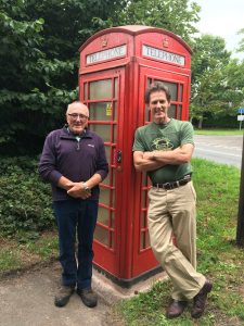 The picture shows Cllr Kevin Massey and Paul Riley having completed the work to securely reinstate the telephone box.